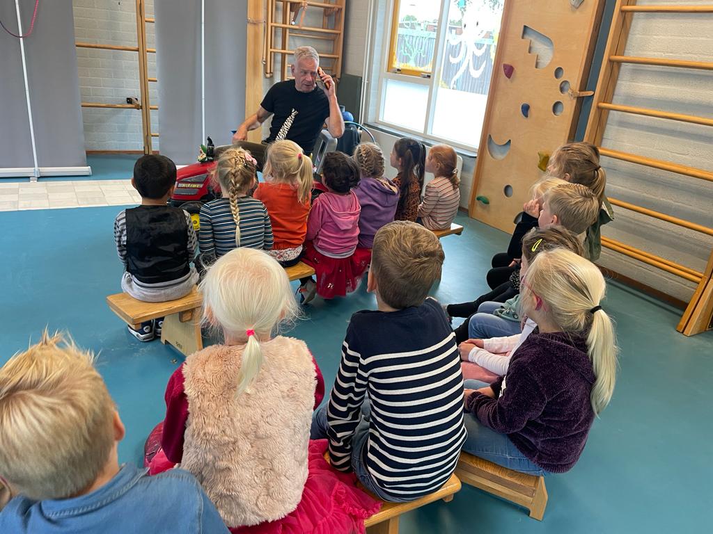 Op maandag 16 oktober bezochten de kinderen van de groepen 1 en 2 in het speellokaal de interactieve voorstelling Paolo, de zebratemmer.