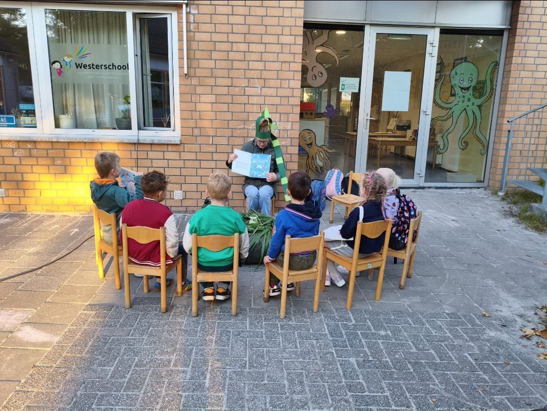 Vandaag is de Kinderboekenweek gestart, met als thema 'Vol avontuur'. Bij de start konden de leerlingen vanmorgen gelijk al op leesavontuur. Want op beide pleinen waren avontuurlijke meesters en juffen aan het voorlezen uit al even avontuurlijke boeken. Want is eigenlijk niet elk boek avontuurlijk? Je komt in boeken vaak op plekken waar je nog niet of nooit geweest bent, ontmoet nieuwe mensen en beleeft hun avonturen.